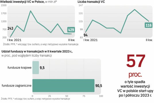 Finansowanie venture capital nad Wisłą kurczy się rok do roku szósty kwartał z rzędu. W II kwartale 2023 r. do start-upów popłynęło 429 mln zł, o połowę mniej niż rok wcześniej – wskazują dane Polskiego Funduszu Rozwoju.