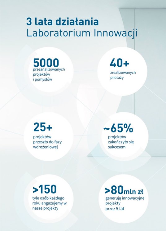 W tym roku PZU udostępnił raport podsumowujący innowacje i trzyletnią współpracę ze startupami „PZU Ready For Startups". Wynika z niego, że Laboratorium Innowacji, koordynujące współpracę największego polskiego ubezpieczyciela ze startupami, przeanalizowało w tym czasie ponad 5 tys. pomysłów. Z tego 40 przeszło do etapu pilotażu, a ponad 25 zostało przekazanych do wdrożenia w bliskiej współpracy z przedstawicielami poszczególnych biznesów Grupy PZU. Wdrożone innowacje wygenerowały łącznie oszczędności przekraczające 80 mln zł, a w ich realizację rokrocznie zaangażowanych jest ponad 150 osób.