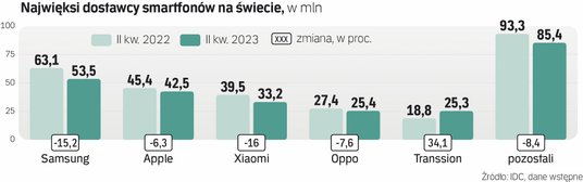 Potwierdzają się prognozy, że firmy i konsumenci będą rzadziej kupować nowe smartfony. Najwięksi globalni producenci notują spadki sprzedaży.