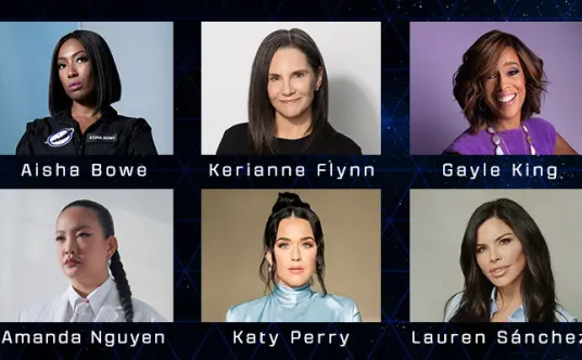 Wśród sześciu kobiet, które na krótko przekroczyły linię Kármána, niewidzialną granicę na wysokości 62 mil (100 km), powszechnie uznawaną za granicę kosmosu, są: piosenkarka pop Katy Perry, autorka takich hitów jak „Firework” czy I „Kissed a Girl"; Gayle King, współprowadząca „CBS Mornings”; Aisha Bowe, była specjalistka od rakiet z NASA; Amanda Nguyen, naukowiec zajmujący się bioastronautyką i Kerianne Flynn, producentka filmowa. Szefową misji jest zaś Lauren Sánchez, była dziennikarka, pisarka, licencjonowany pilot (założycielka Black Ops Aviation), a jednocześnie narzeczona Jeffa Bezosa.
