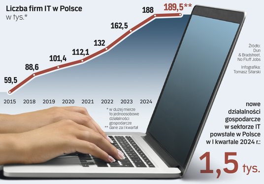 O 16 proc. skoczyła w Polsce w ub.r. liczba firm IT. Tylko w I kwartale 2024 r. przybyło 1,5 tys....